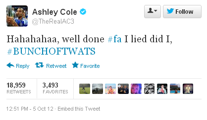 Old tweet I bookmark to bring out when I feel like I do right now.  Ashley Cole's response to the FA sanctioning John Terry in the Anton Ferdinand Fiasco approx. 10 years ago.