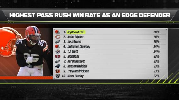 EDGE goes up with Clowney giving us two of the top-ten Pass Rush Win Rate EDGE defenders in the league.
