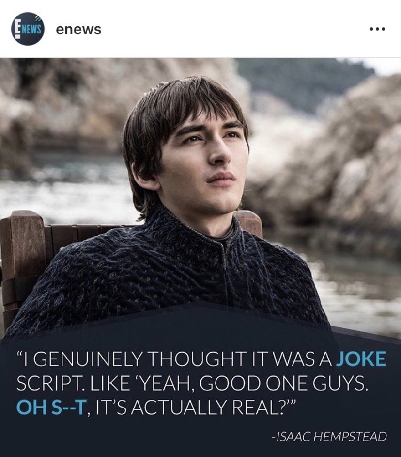 https://youtu.be/7h2B6roXenQ?t=260Arya: What's west of Westeros? This has nothing to do with my character or the story, but we gotta get these spinoff shows going!