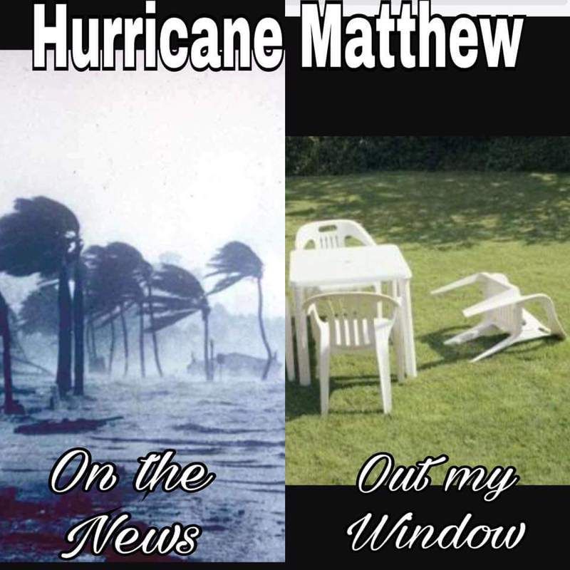 Crazy isn't it? My MIL was in Orlando (snowbird) for their first hurricane when Matthew rolled in and was pissed that all the speculation of destruction and such never happened. I don't get that at all, I'd be happy nothing happened and I wasted whatever time, money and effort it required to prep.