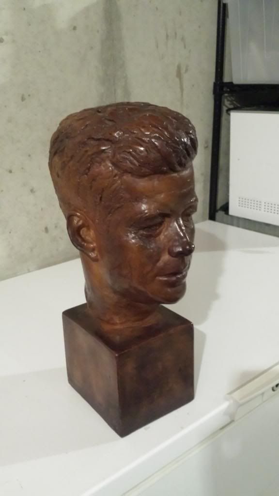 My Grandfather (Mom's side) used to do a lot of work for the DNC. As a result, he was given this bust of JFK by the DNC I'm told. As God as my witness, I saw the same one on CNBC back in the 90's and JFK had the exact same one on his desk. That one sold for a cool million at auction.