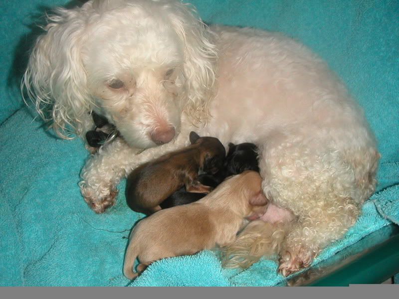 About a week before Christmas our 15 year old beagle, Cocoa, went outside to pee and never came back. It was sad but kind of relieving at the same time as we didn't watch her suffer or have a huge vet bill. Yesterday our 9 year old shihtzu/poodle cross, Cookie, wasn't herself, she pooped in the kennel which she never does. We cleaned her up and put her outside for a bit, she ran around and seemed herself just a little calmer. This morning she'd soiled in the kennel again a little so I cleaned her off and cleaned out the kennel and she went right back in there and curled up whimpering and kind of rocking slowly back and forth. I called hubby and told him she wasn't herself. He was driving out to the cottage with a new fridge, said he'd be back in an hour. I checked on her again and she was curled up sleeping with her tongue out like she always does. I lifted the hair out of her eyes and she looked at me tiredly, closed her eyes again and let out a big sigh. When he came home I reminded him to check on her and see what he thought. She was dead in the kennel. First time I've ever cried over a pet. Also the first time I've actually had to deal with a dead pet instead of it just running away or getting lost. And she was so stupid in that dumb blonde way that she seemed so innocent. We use to throw her meat and if it landed on her head or nose, she couldn't find it. Stupid mutt. :cry:RIP Cookie. You too, Cocoa. Together again. http://i31.photobucket.com/albums/c381/Early_10/jan242004005.jpg