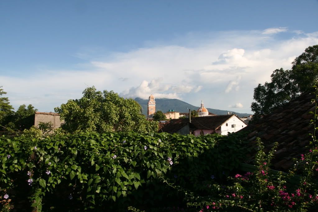 Just to be more clear, in the colonial homes in Granada there is generally a courtyard space smack dab in the middle of the house. That's why much of the house is essentially outdoors. I don't have great pictures to demonstrate this, but this is the middle of our house. The area you see on the left of that picture is the roof of the dining area and behind that is the kitchen, so both are covered but completely open to the middle courtyard. There is also a large living area on the other side of that that is open (no doors) but covered by the crappy tile roof you can catch a glimpse of on the right (this picture was taken from the second-floor office, which is likewise covered but open to the courtyard area in the middle. So it's very tricky to keep any creatures out of there. We've considered putting a foot or so of mesh/wiring around the perimeter of the courtyard roof, but the aesthetics are not pleasing, and unless we get a metal roof it won't help that much in any case.