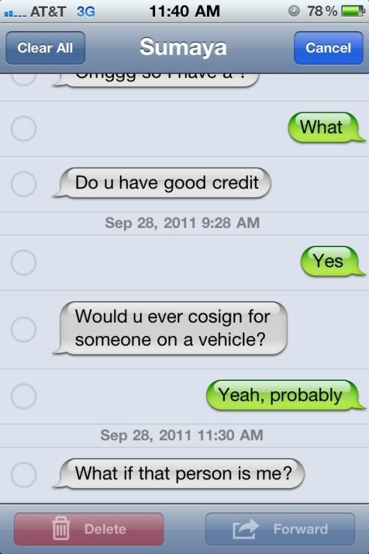 I can't view this link at work but based on subsequent responses it sounds like she asked you to co-sign a loan for her :lmao:I'd tell her to GTFO.I know you already said the correct answer is no but I'm still going to have to say for the record: DO NOT ####### DO THIS.JFC, what a nutjob she is.