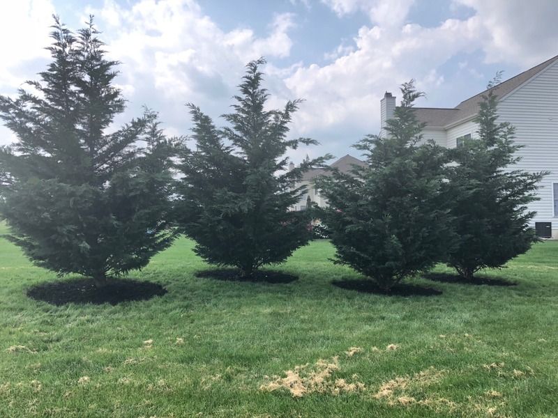 Spent 6 hours on Memorial Day extending mulch beds under four trees to a four foot radius so I could mow around them without eating tree branches.  Used a string and a spray paint can for even circles.  Edged and cut out everything with my trusty edger and then dropped off most of the sod at yard waste recycling over two loads of my FIL's pickup.  Then poured in 16 x 2 cuft bags of black mulch because it was on sale and I didn't feel like waiting to have a load delivered.  (So about 2" deep over about 200 sqft)