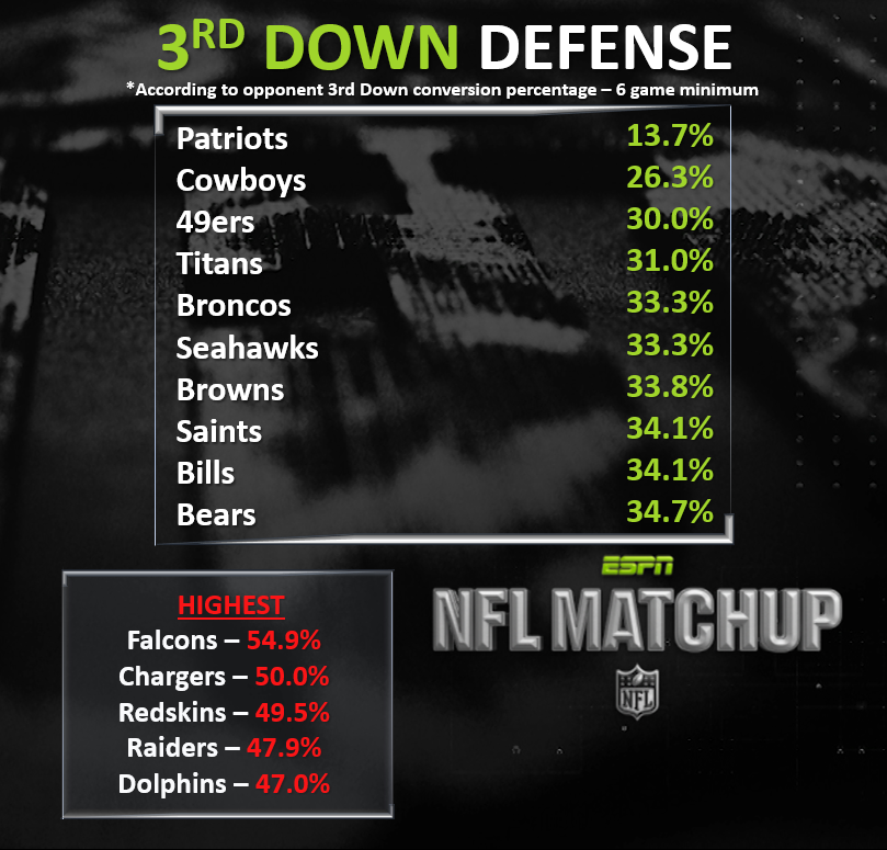 Here are the top 3rd down defenses so far this season. Will the @Patriots stay at the top of this list after tonight?