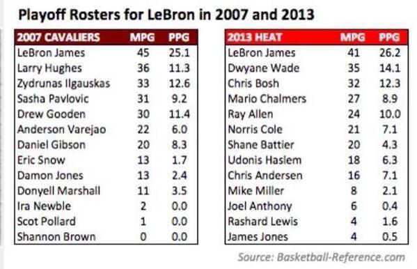 Strangely, I think the players Jordan played with on some of those teams were much better than what Bron has in Miami.