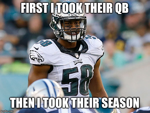 [#10127] You have reached your quota of positive votes for the dayAnd don't forget the great job the O-line did. Especially Lane Johnson and Dennis Kelly. Mostly kept the woman beater in check.