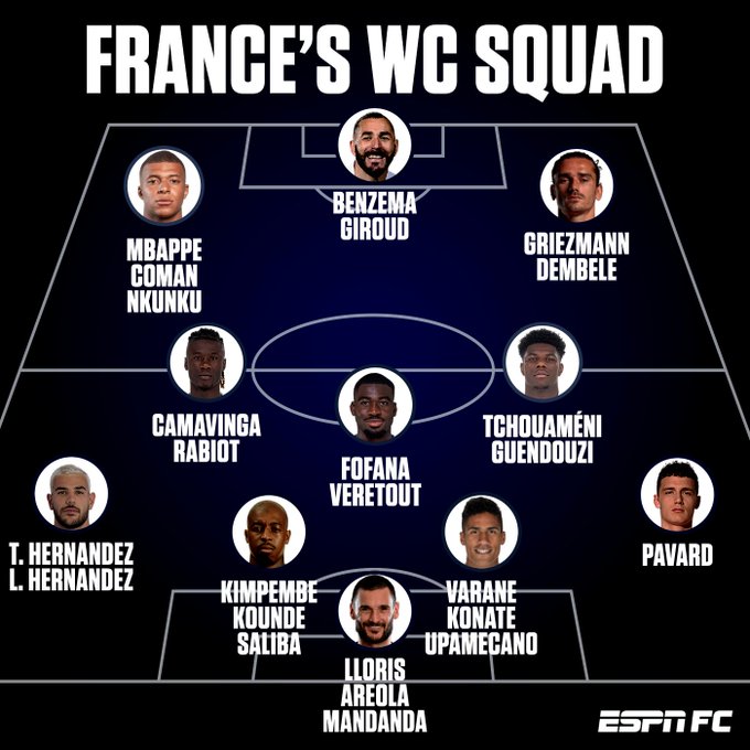 But they don't have a Dest or Yedlin at RB. Pathetic. Also, we just know the Big Sexy Frenchman (the backup striker) is going to bang in some goals this WC, I believe he can set some French scoring records, which is mind boggling.RB seems a little weak. Never been impressed w/ Pavard. The rest of the starters are basically world class. Damn.Here is the France roster.....along with Brazil, this is as deep as it gets