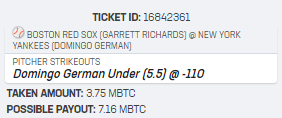 Agreed. I think both guys get knocked around (liked F5 and full game overs). But I also felt there was increased value betting against the NY market who are gonna bet German to get over strikeouts "because he's a Yankee".