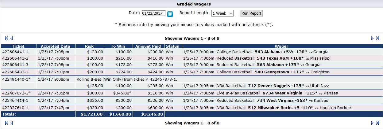 We had no sooner got done talking about his run betting this year (started with $100 and ran it to $1400 over the course of CFB season (some NFL and other #### mixed in) and he says he has a crazy 4 team NBA parlay on the early games. He builds it around 76ers ML which he loves. He then wants Grizzlies -3 (I think), Warriors -10.5, and Thunder -1.5. I decide to tail but per his mention that grizz weren't fully healthy and were 0-6 on 2days rest I downgrade MEM to ML. I don't bet basketball but I know i hate 10.5 so I buy the point to 9.5 on Warriors. End result... he misses parlay due to Grizz not covering and Golden state winning by 10. I, however, got lucky as #### and those two random ### moves got me to hit the parlay for my first basketball of the season.