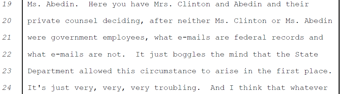 - Judge Sullivan, in ordering discovery to get underway in one of the 50 FOIA suits currently vs Hillary and State.