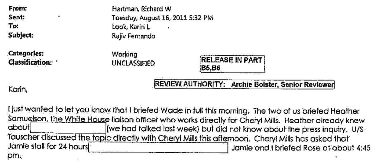 The emails further reveal how, after inquiries from ABC News, the Clinton staff sought to “protect the name” of the Secretary, “stall” the ABC News reporter and ultimately accept the resignation of the donor just two days later.