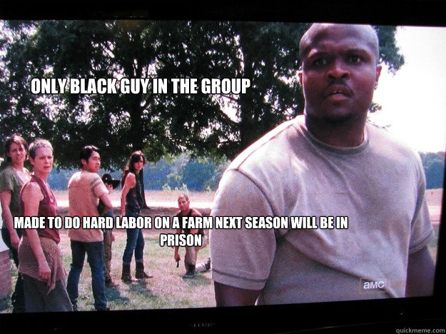 I just realized they even kill off the black walkers.that nappy haired dude with the watermelon head is def takin' a bullet pretty soon now that tyreese is in town.
