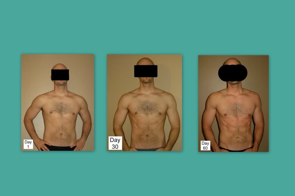Well done, my results are not nearly as noticeable as yours partly because I still have about 15 lbs to lose before anything remotely looking like an ab muscle would start to show. Regardless, the program has done wonders for me. Can't say I'd do it again but I'm glad I did it once. (well not done yet, but only a few weeks to go)