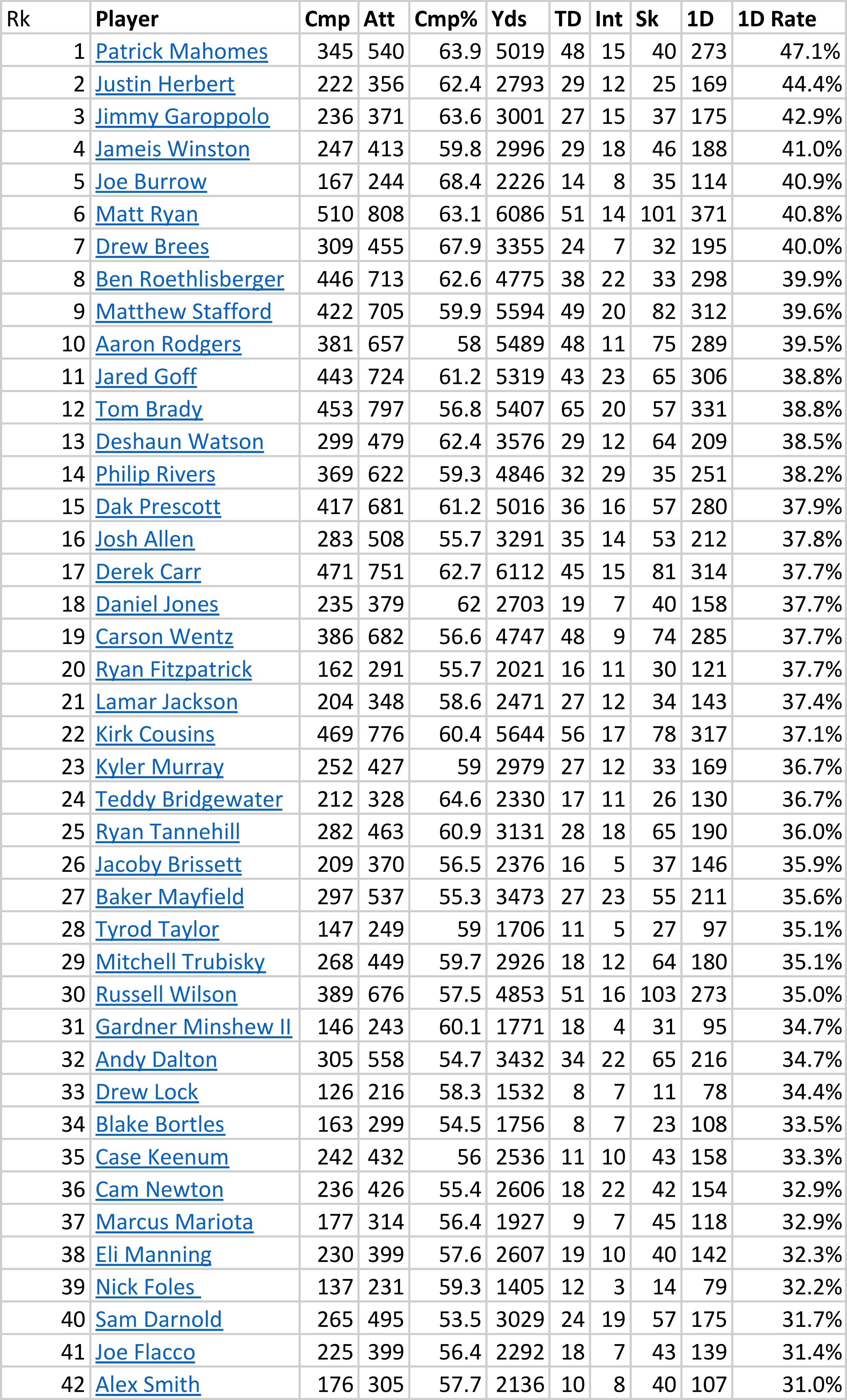 And for clarification, this doesn't mean I think he's one of the best QBs in the league, it just means he's playing efficiently, which at the very least could increase his trade value this offseason if they decide to go that route.