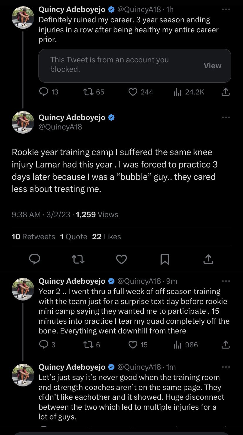 Baltimore having terrible strength and conditioning coaches def explains why they have had so many players get injured