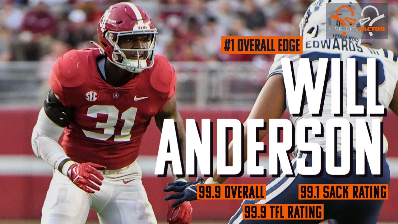 One of our highest rated prospects EVER, @AlabamaFTBL's Will Anderson is easily our top edge prospect in the 2023 #NFLDraft. With a production score of 99.9, he could be a generational pass rush talent!