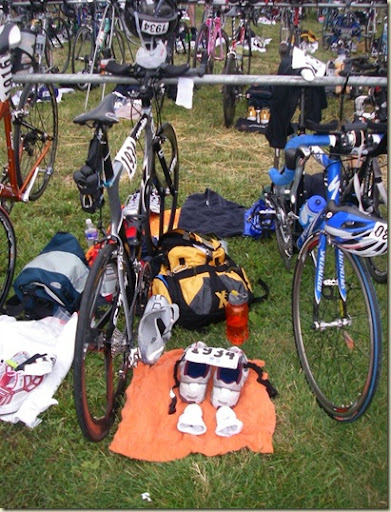 Craptastic tempo run this morning - 70 degrees and 70% humidity, which isn't too bad, but the sun was out and seemed to really cook me. 2.5 miles - 7:38s, 173 bpm ave2.75 miles - 8:28s, 180 bpm ave. That includes 2 minutes of walking ( :X ) when my HR initially hit 185. I let it drop to 150 before starting again, and it went right back above 180. It hit 191 at the end. Overall 5.25 miles at 8:05s on a dialed-back target of 7:50s. Ugh. _____________________ So who wants to talk with me a bit about transitions? Are they always set up the same? How much space is "yours?" I assume there is some sort of bike rack involved?