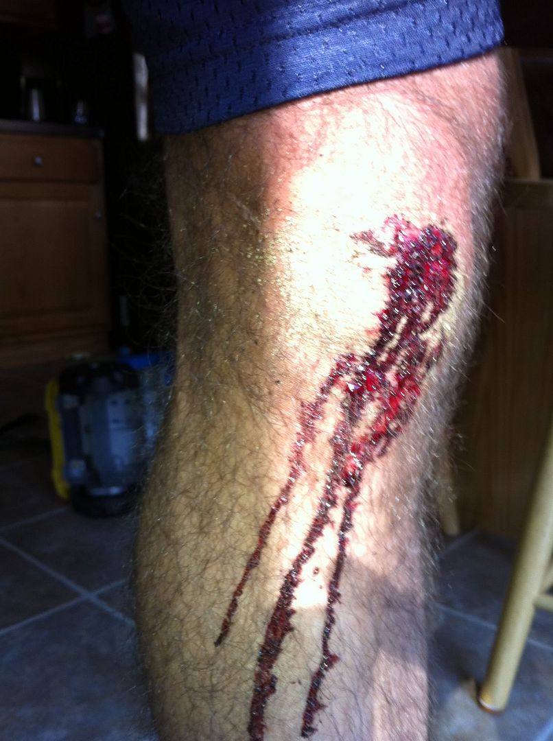 The miles just melted away today. I've mentioned it before, but my Sunday route takes me up through a local state park where I do about 6-7mi worth of trails before heading home. At about 10.3, I did my best BnB impression (warning, for the squeamish). I swear that root jumped out of the ground and wrapped around the toe of my shoe. :unsure: