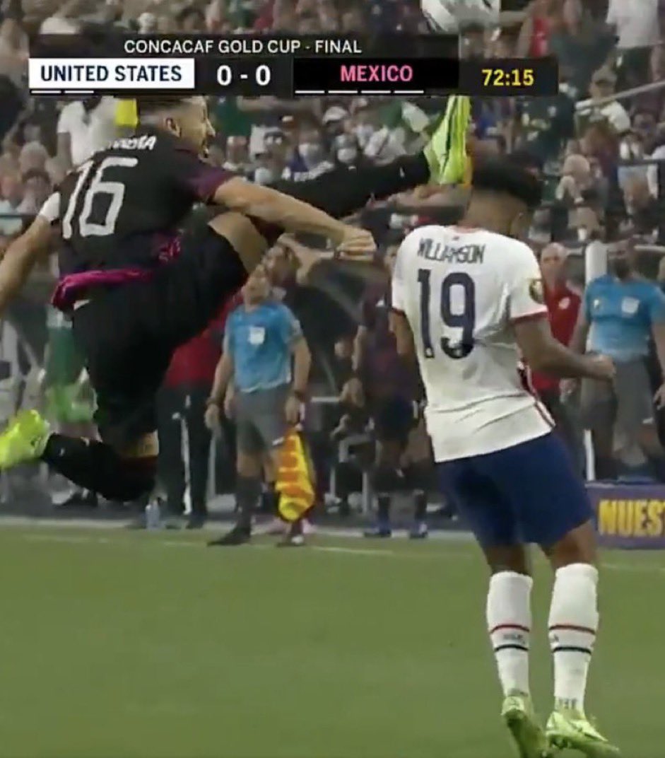 During the game there was one replay angle that showed him slamming hard into a Mexico player in the melee. It’s what caused them to all go after him. I think the media dropped the ball by focusing on the “choke” which was really nothing. They only showed that replay once and if you blinked you missed it. Still excessive imo but the red card was earned.