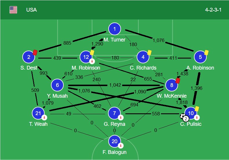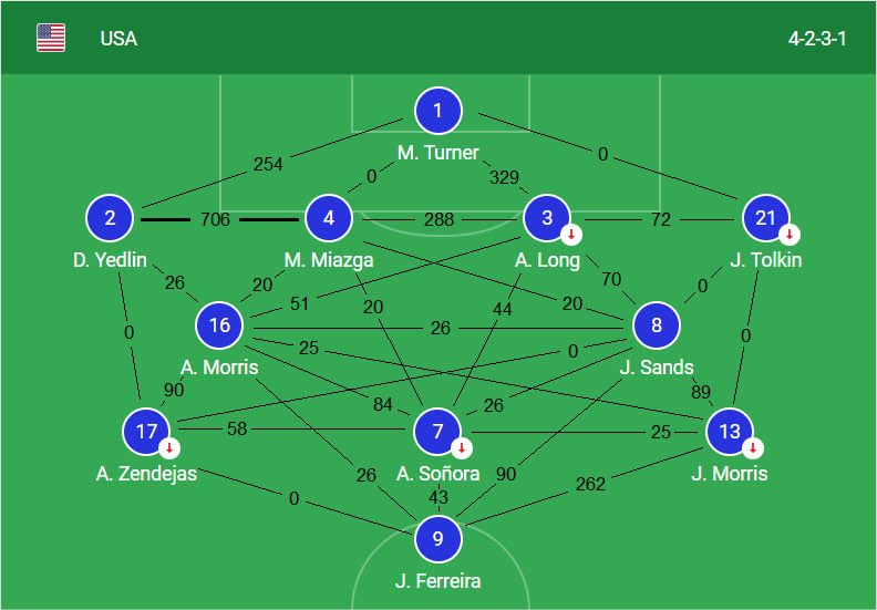 check out these two awesome graphics. The first shows minutes played with each other for the Nations League game against Mexico vs the minutes played with each other for the Gold Cup game against Jamaica