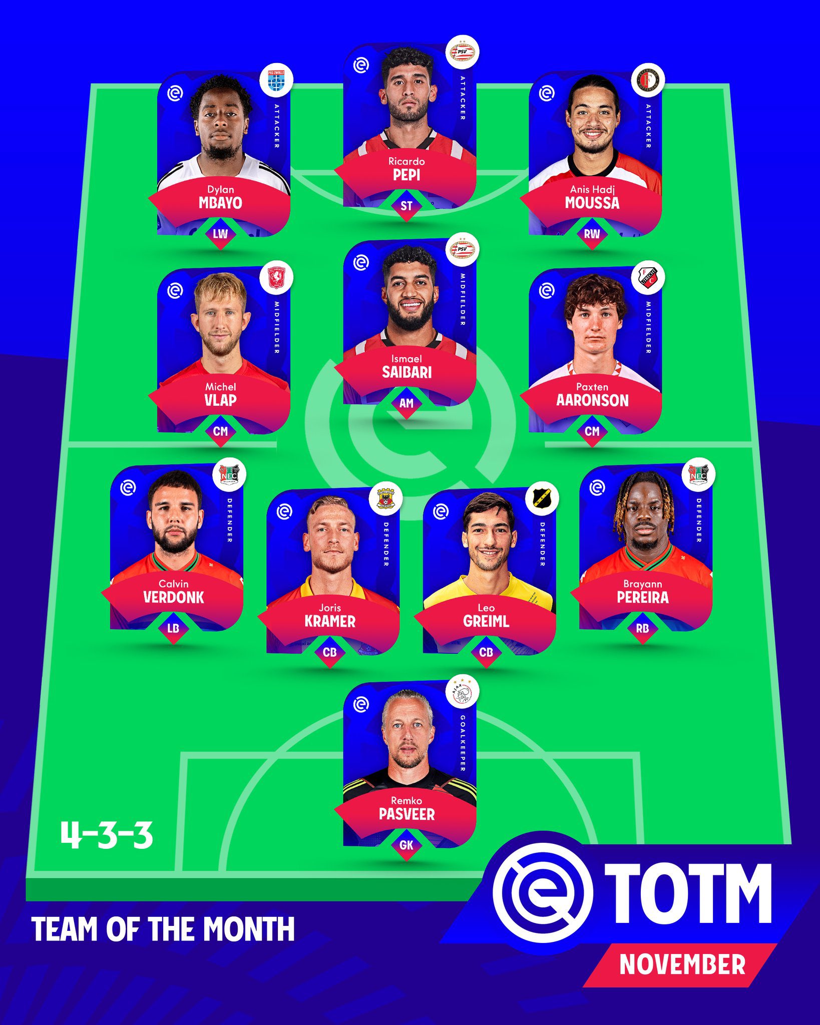 I love that Saibari made it too. He's always the first one to celebrate when Pepi or Tillman score, and often seems to be on the other end of their goals and assists.Both Pepi and Paxten make the Eredivisie team of the month